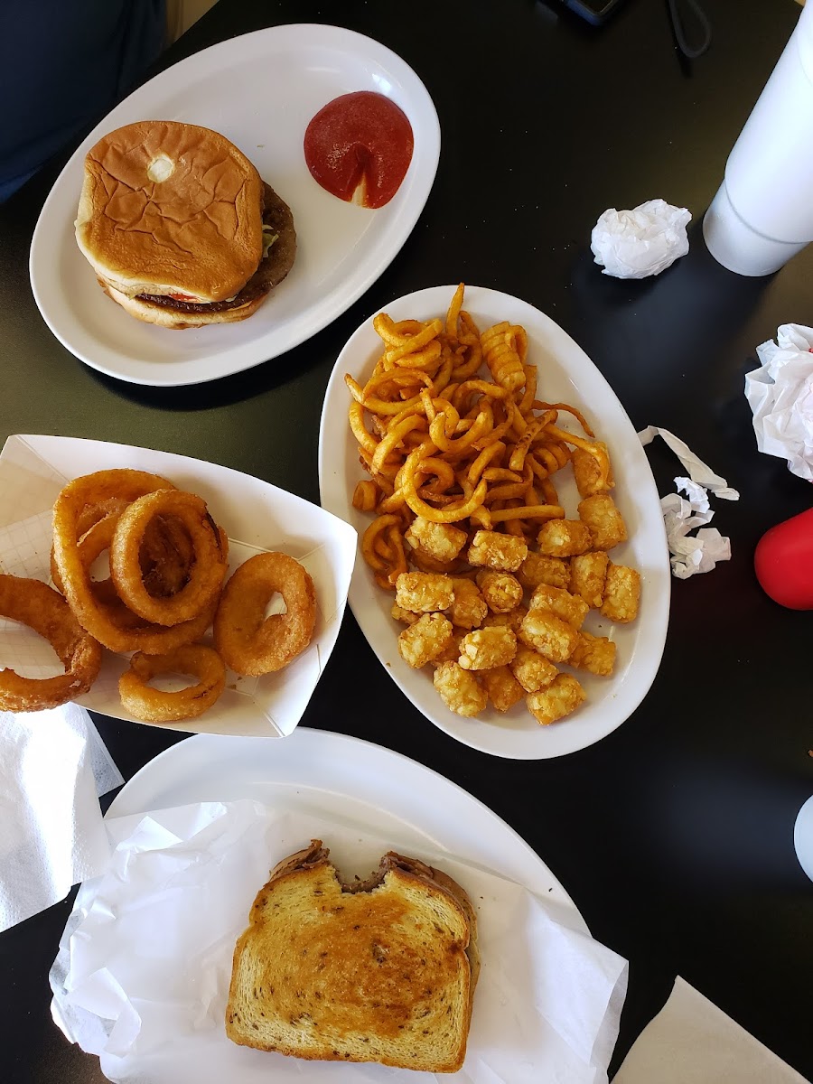Was driving through this place with my Big Charter bus as the kids were at a museum.. and I stopped by and got the cheeseburger with onion rings. The onions rings were HUGE and sooooo yummy they were very crispy and thats how I like them... prob a 2nd deep fry hehe but very good I must say.. The cheeseburger was good because it had a nice crunch to the bun but wasn't dry which took me by surprise. Was worth the wait because after all I did come at lunch time.. hehe Thank you all for your kindness as well.. Also, I thought the restroom was cool with the walls you can write on as they encourage it with dry erasers.. I guess it takes out the vandalism thats kinda hidden it you OUT!!! Can't wait to try the ice cream the next time im in the area..